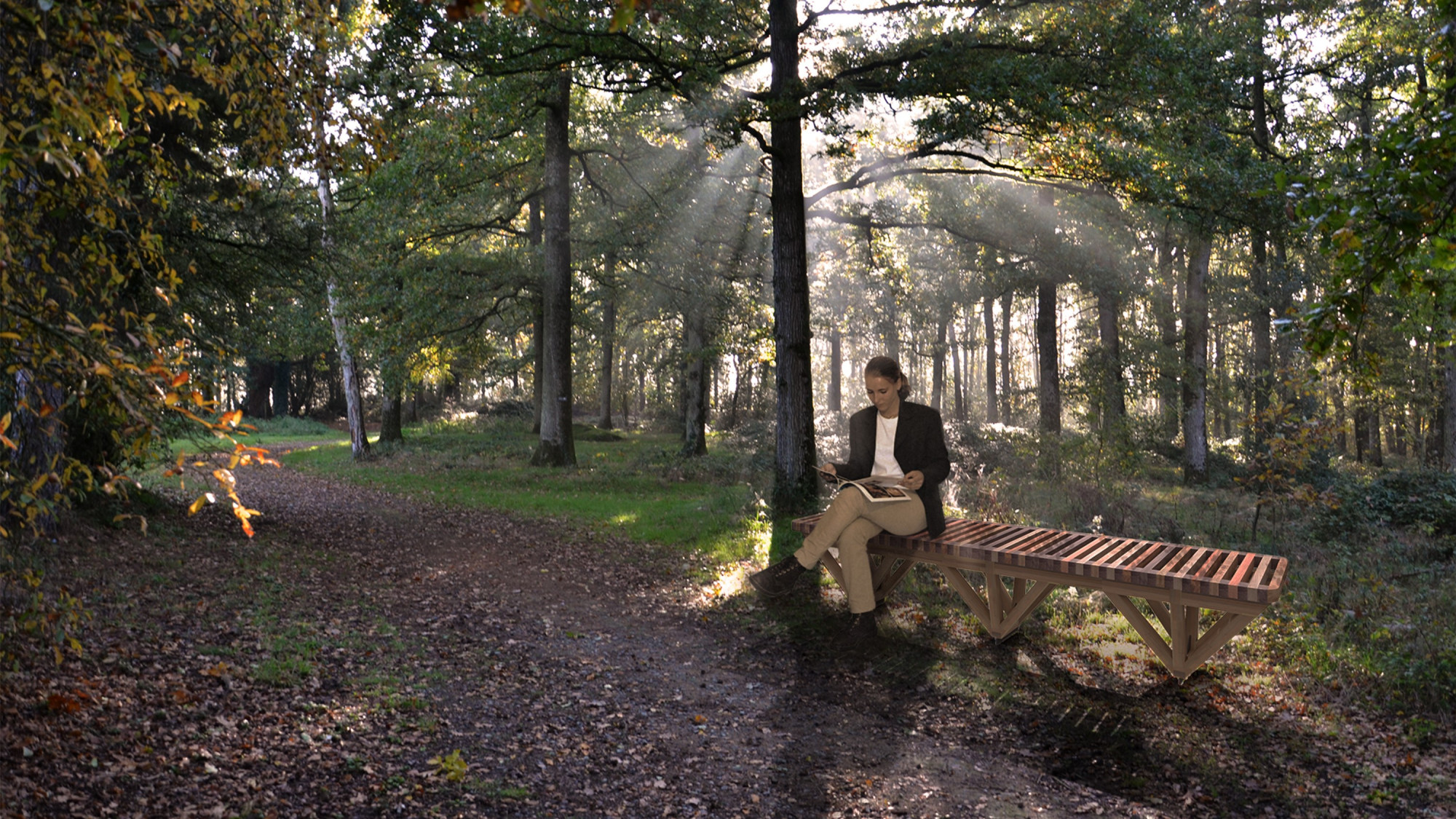 Le banc EBa01d est présenté lors de la Paris Design Week 2025 à la Bibliothèque Historique de la ville de Paris