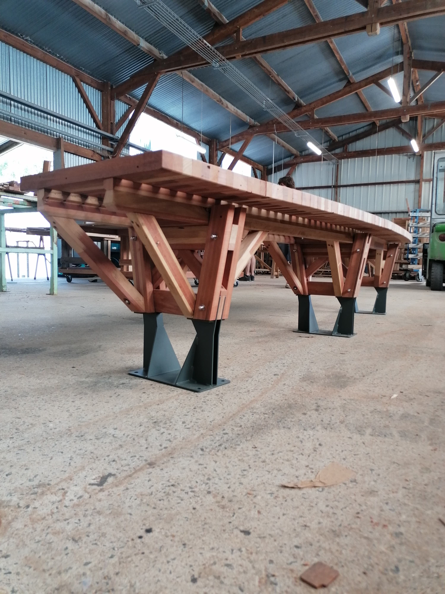 Piétement en acier métallisé et thermolaqué, réalisé par l’entreprise Comebo