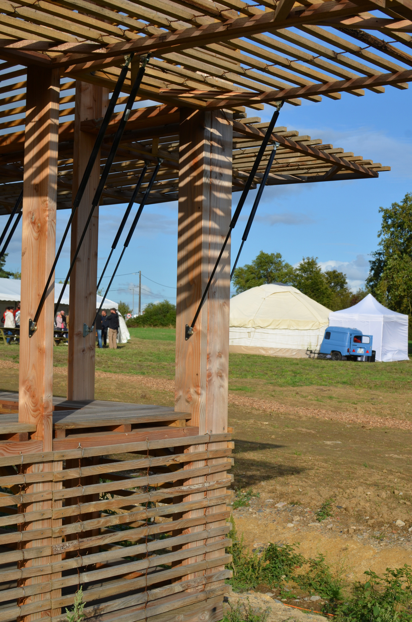 Suite aux premières esquisses formulées par 100 Détours, le projet est ensuite suivi par l’agence Archimag à Bressuire, et pousse pas mal de curseurs sur les biosourcés, le réemploi (et la réutilisation), l’intégration du bâti au vivant environnant, et même des ateliers participatifs sur les murets en pierre sèche.