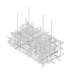 Réalisation d’un lustre ALu01 en bois de fenêtres d’extérieures, suivant les plans de RAAM Architecture. Sa composition en bois entremêlés et métissés ainsi que sa dimension monumentale trouve sa place dans cet espace haut sous plafond et s’accorde une belle présence tout en restant aérien.