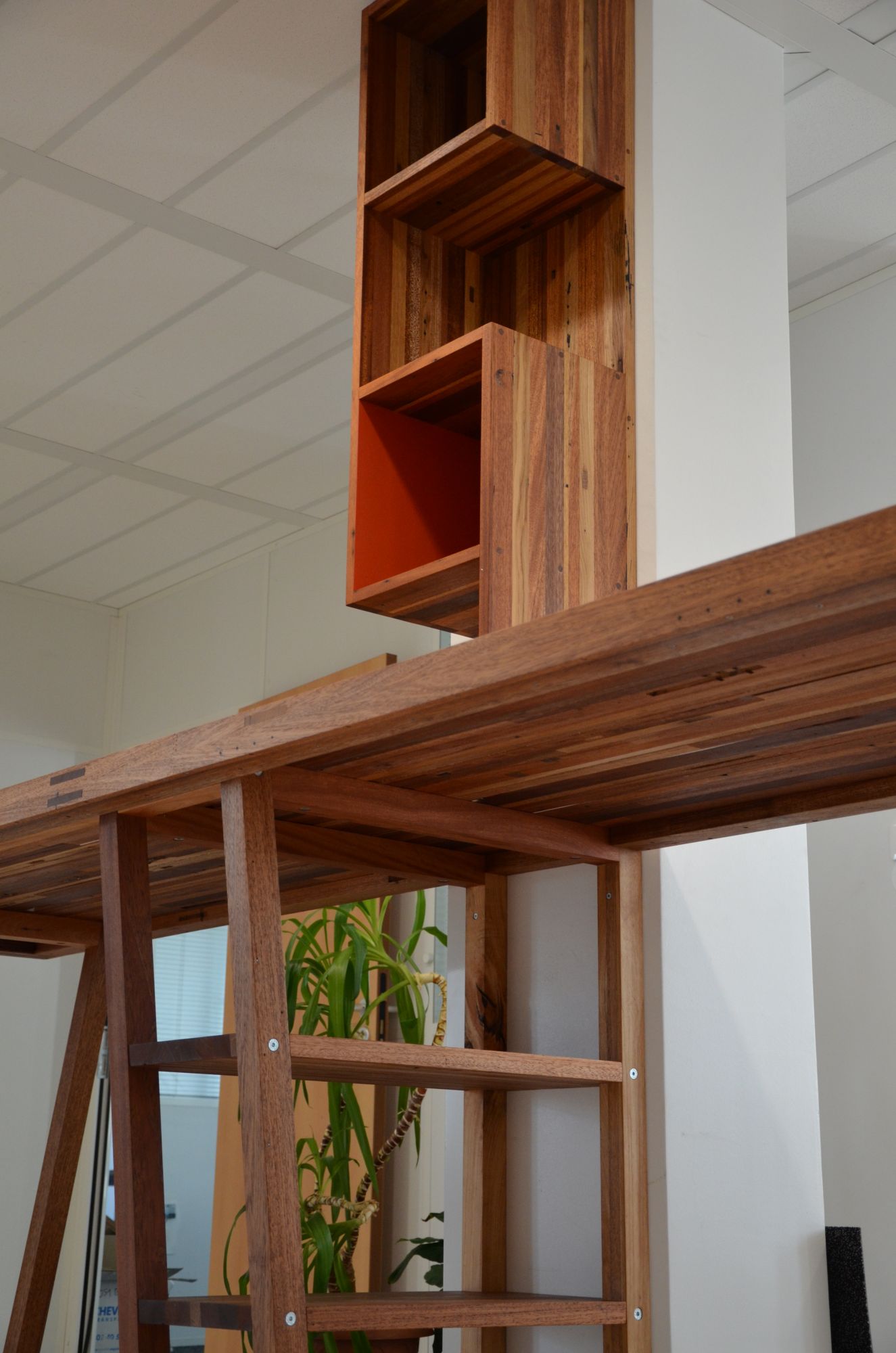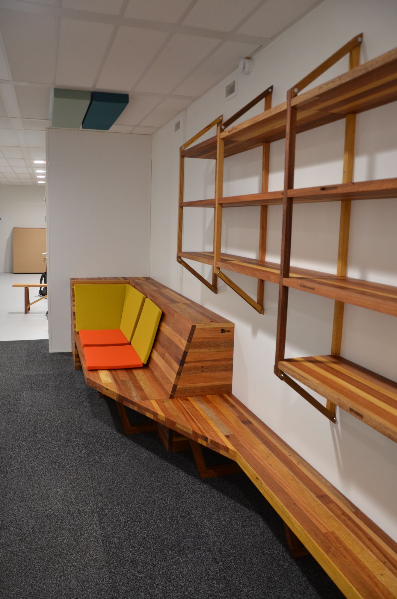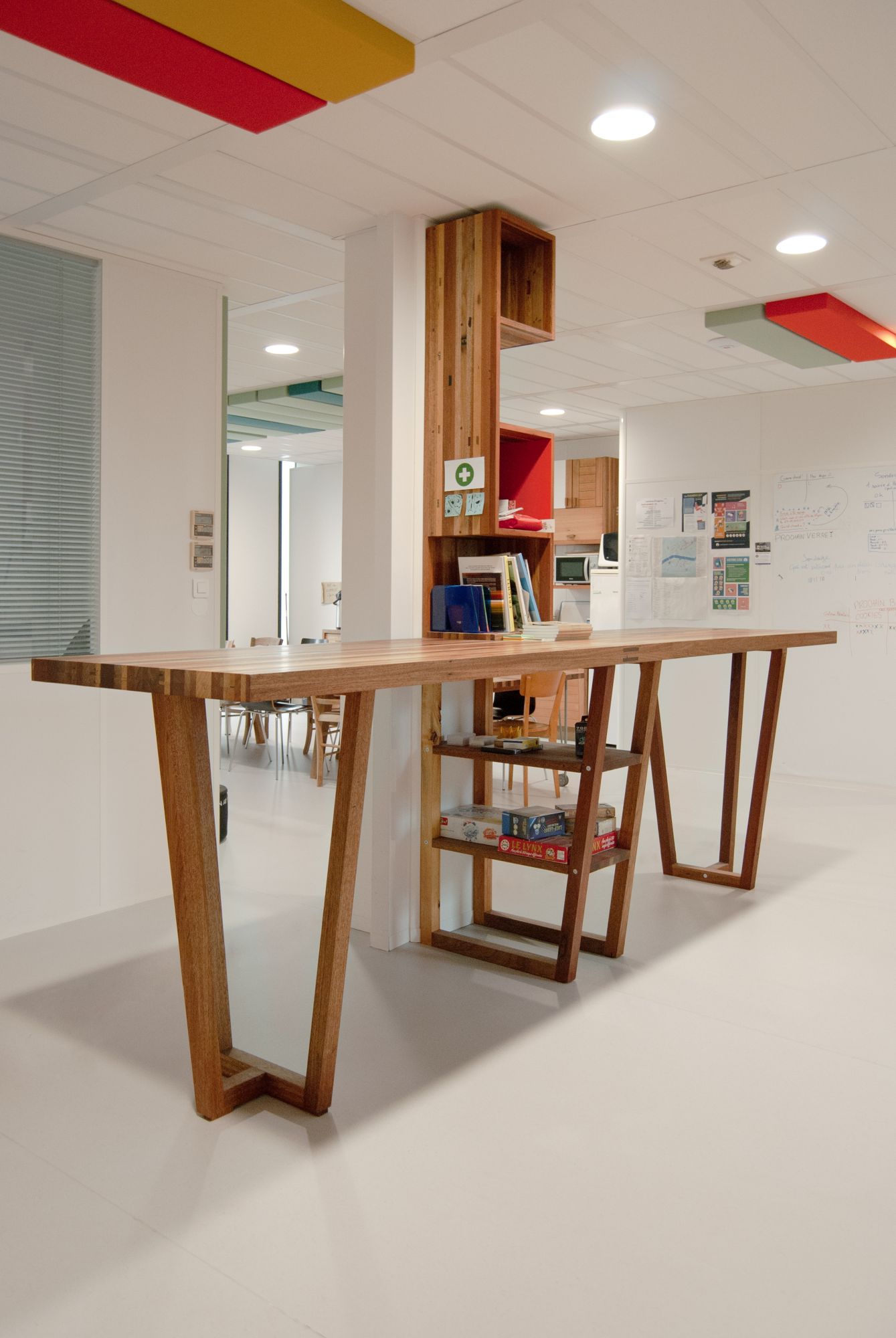 EVEA, bureau d’études spécialisé dans l’analyse de cycle de vie, a ainsi choisi de nous faire réaliser ses agencements intérieurs : cuisine,, table, mange-debout et rangement, banquette méridienne et bibliothèque de démonstration, le tout… 100 % en réemploi !