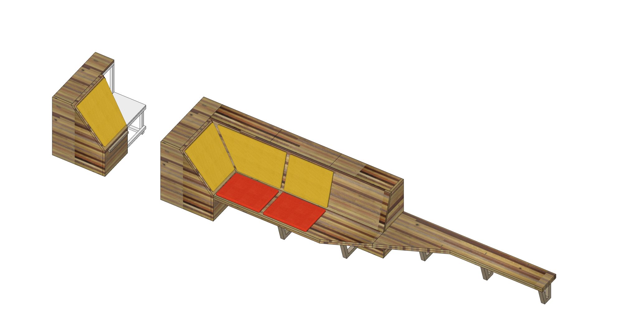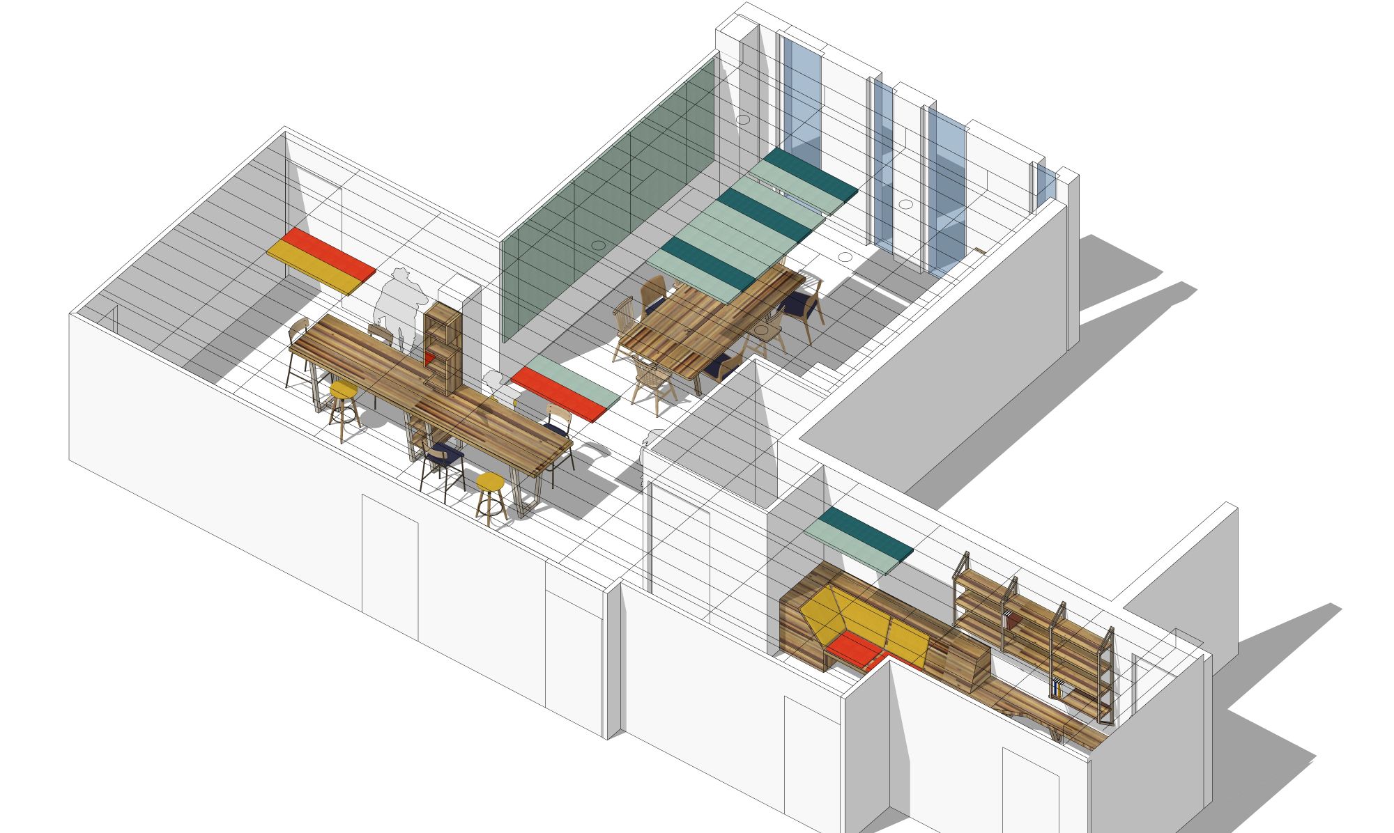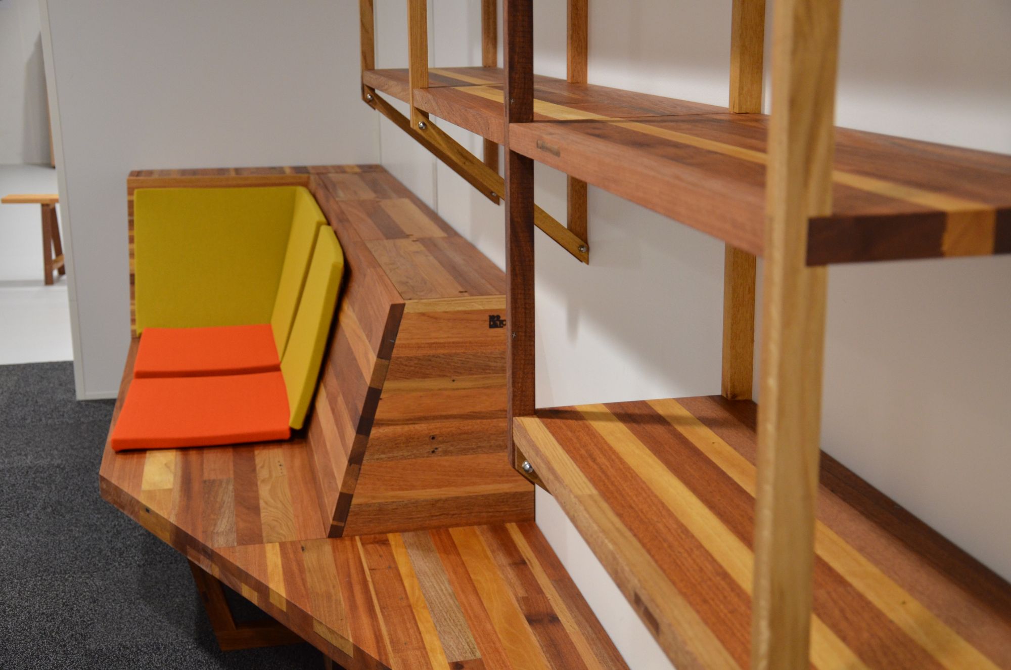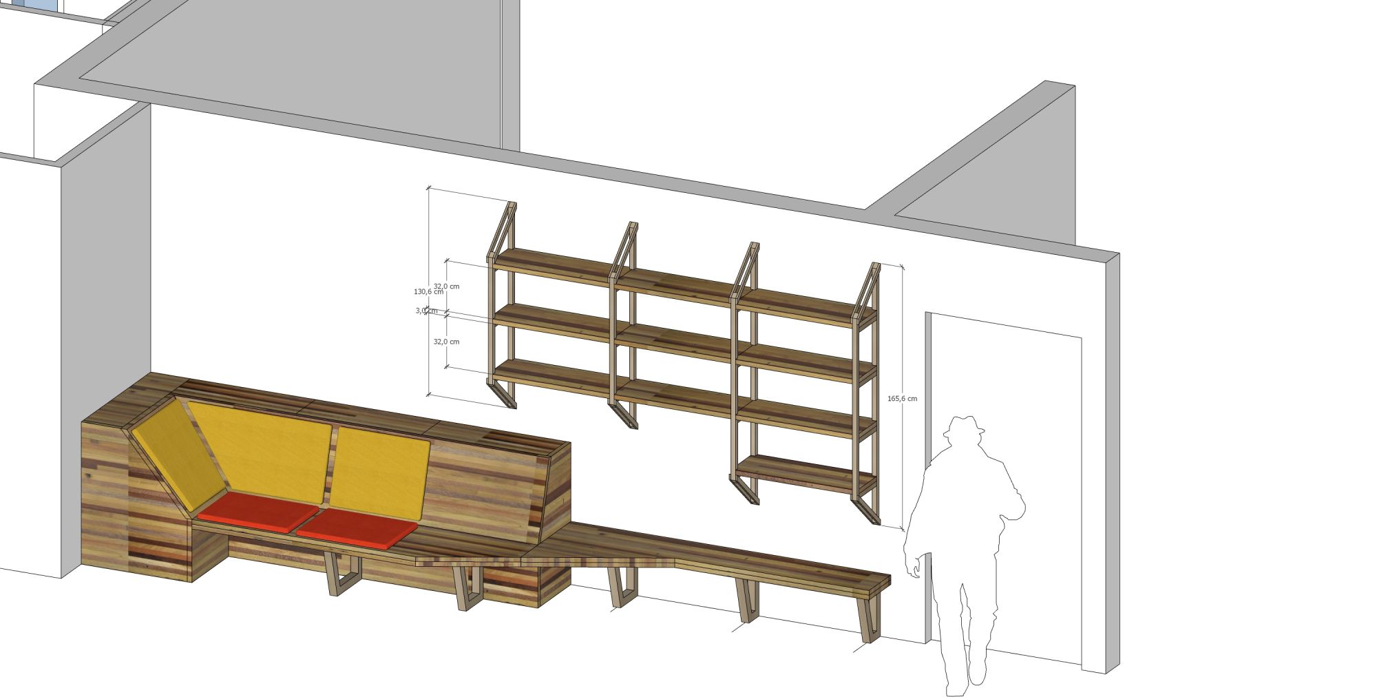 EVEA, bureau d’études spécialisé dans l’analyse de cycle de vie, a ainsi choisi de nous faire réaliser ses agencements intérieurs : cuisine,, table, mange-debout et rangement, banquette méridienne et bibliothèque de démonstration, le tout… 100 % en réemploi !