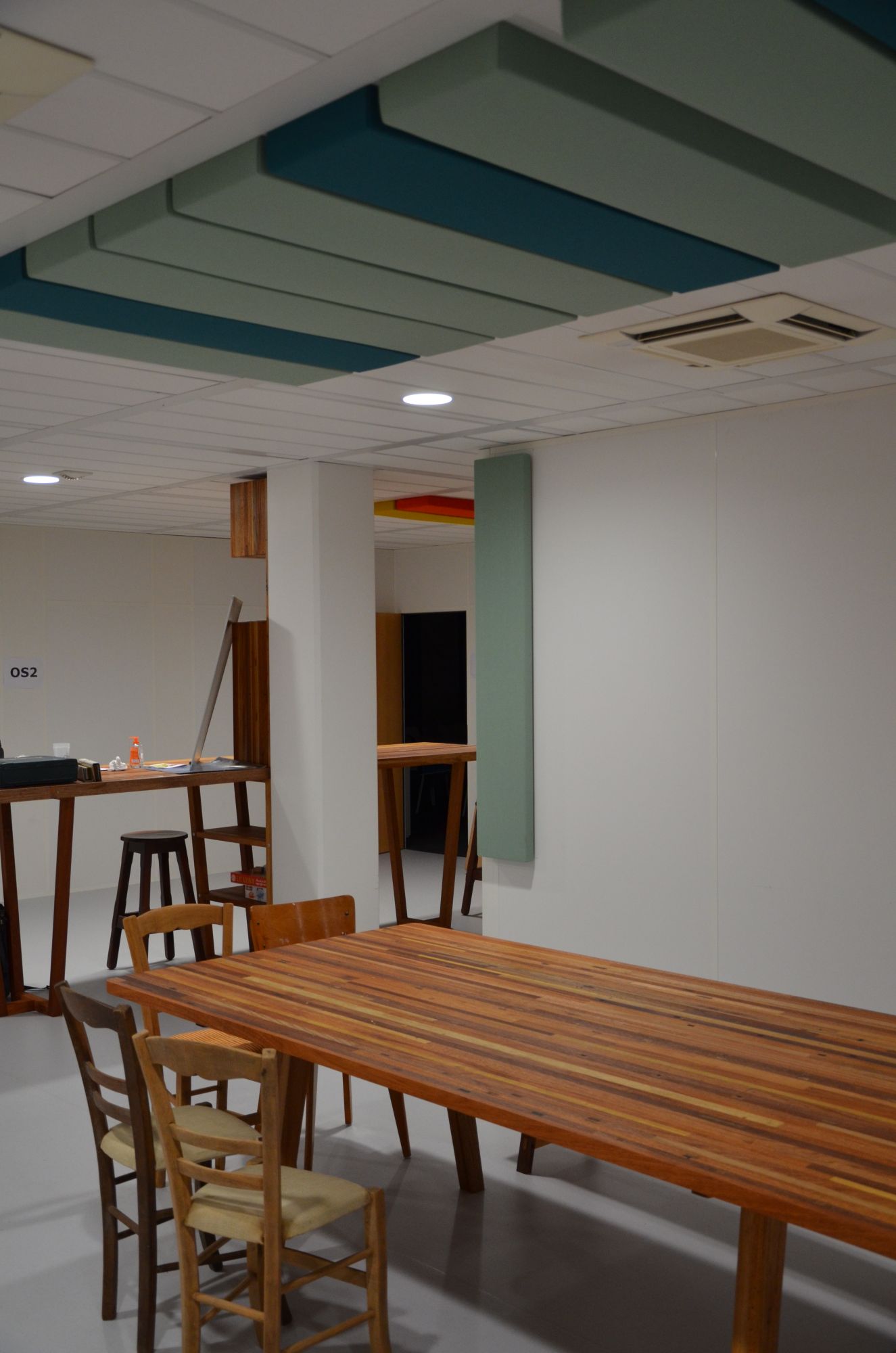 - Des dalles acoustiques insérées sur les plafonds existants,