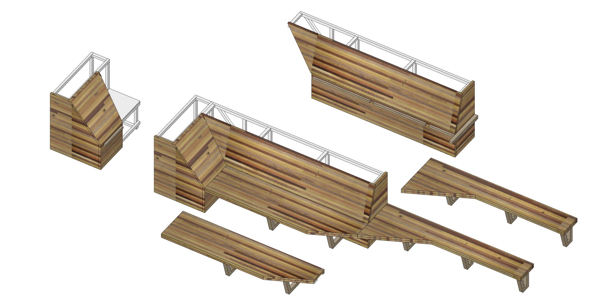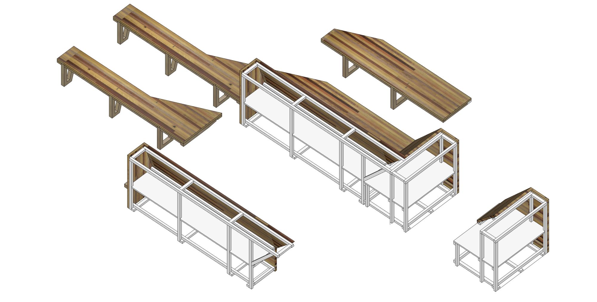 - Fabrication des mobilier en bois issus d’anciennes menuiseries extérieures.