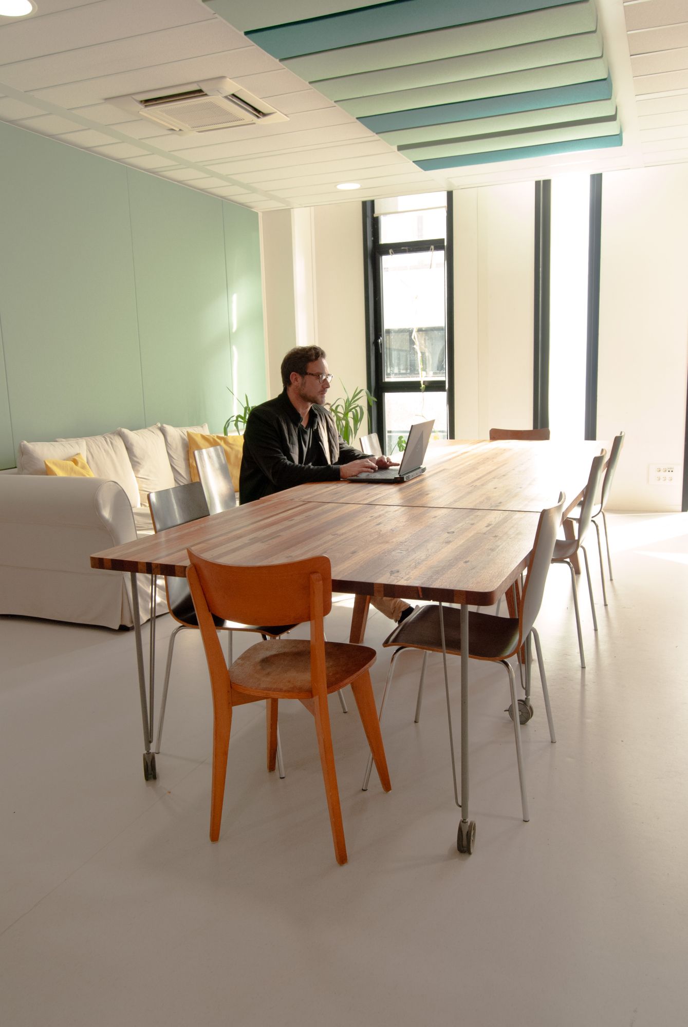 Merci à EVEA pour cette commande d’aménagement d’espaces de réunion, d’accueil, et de convivialité, en 100% réemploi, motivant, et confortable.