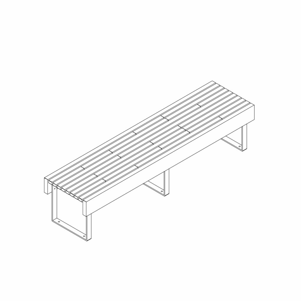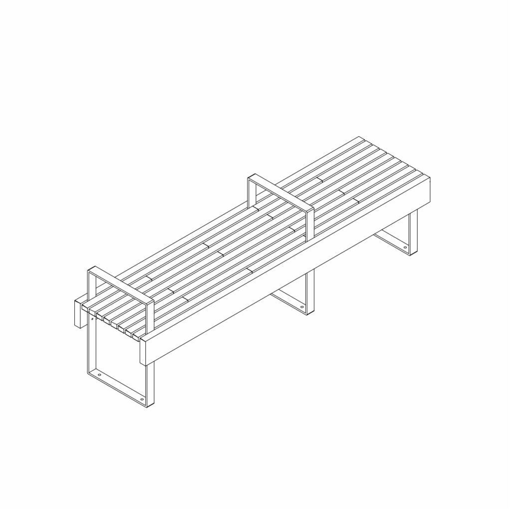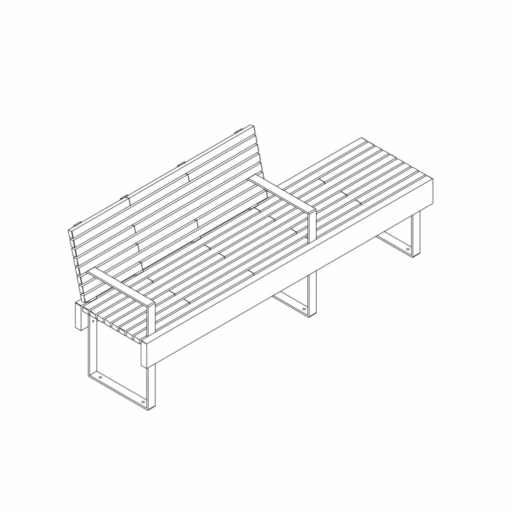 Le modèle se décline en bancs avec ou sans dossiers, avec ou sans accoudoirs.
