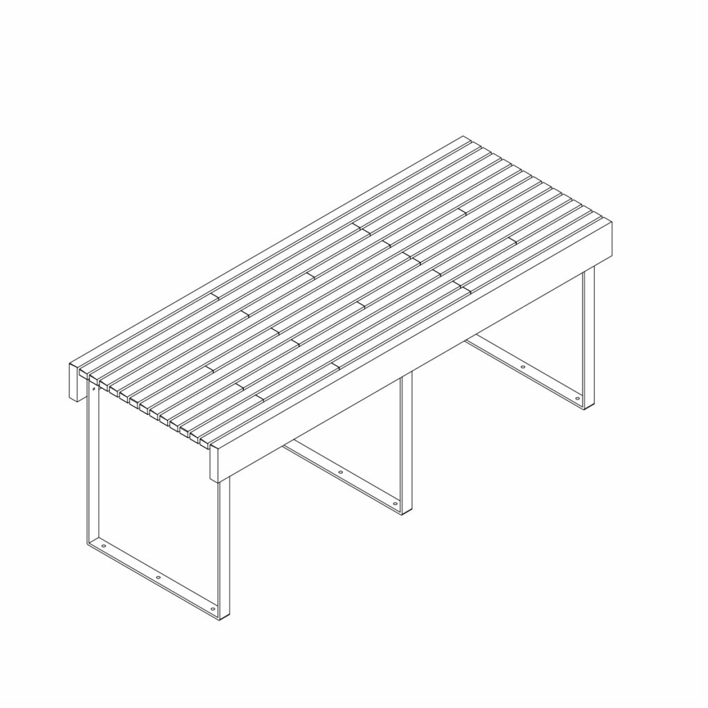 Ce mobilier extérieur MBa04, co-developpé avec les paysagistes Atelier Georges, est fabriqué exclusivement en bois de réutilisation de classe d’emploi 3 & 4, provenant d’anciennes menuiseries extérieures.